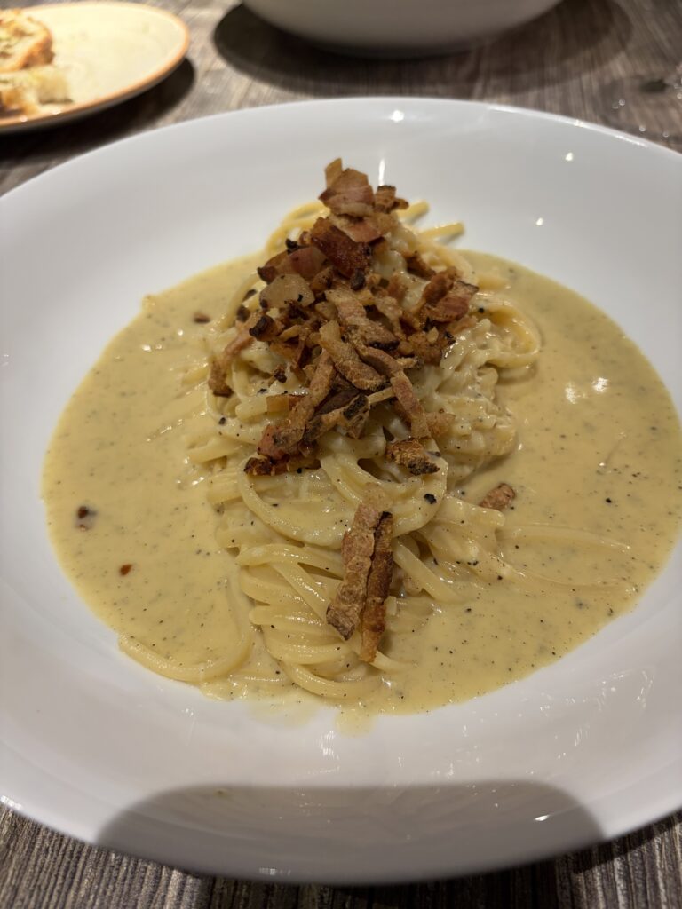 ホテルのレストランも2回も行ってしまいました。本場のカルボナーラとタコ。海の幸も美味しいですよ。