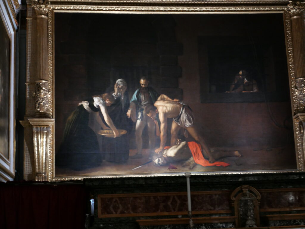 そして、マルタはアートはもうお休みで、演奏会もないし、美味しいもの食べて、景色を観て、猫を探してゆっくりお休みしようと思っていたのですが、聖ヨハネ准司教座大聖堂というところに、行ったら、なんとカラヴァッジョの絵がありました!「聖ヨハネの斬首」という絵なのですが、これがすごい迫力で、一周してもう一回観に行きました。